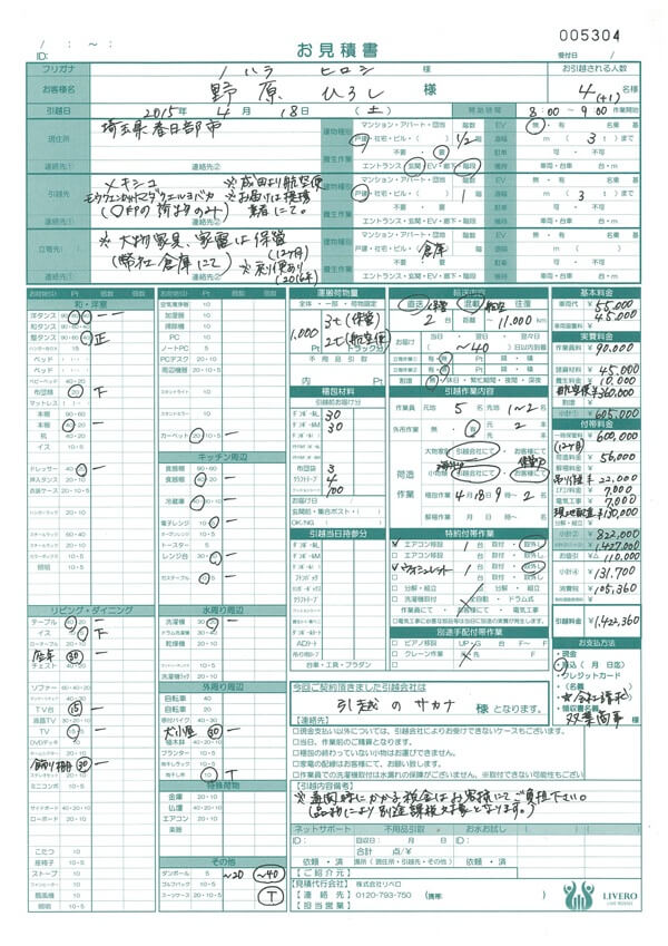 2015.07.03引っ越し見積もり料金 簡易シミュレーション